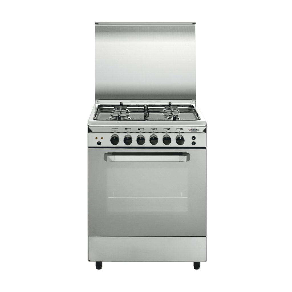 La cocina a gas GLEM – UNICA UN55IB cuenta con un horno todo a gas termostático de 45 litros de volumen y 2,6kW de potencia. El horno incluye: termostatogrill a gas con una potencia de 2 kW , luz, una parrilla cromada, una bandeja.